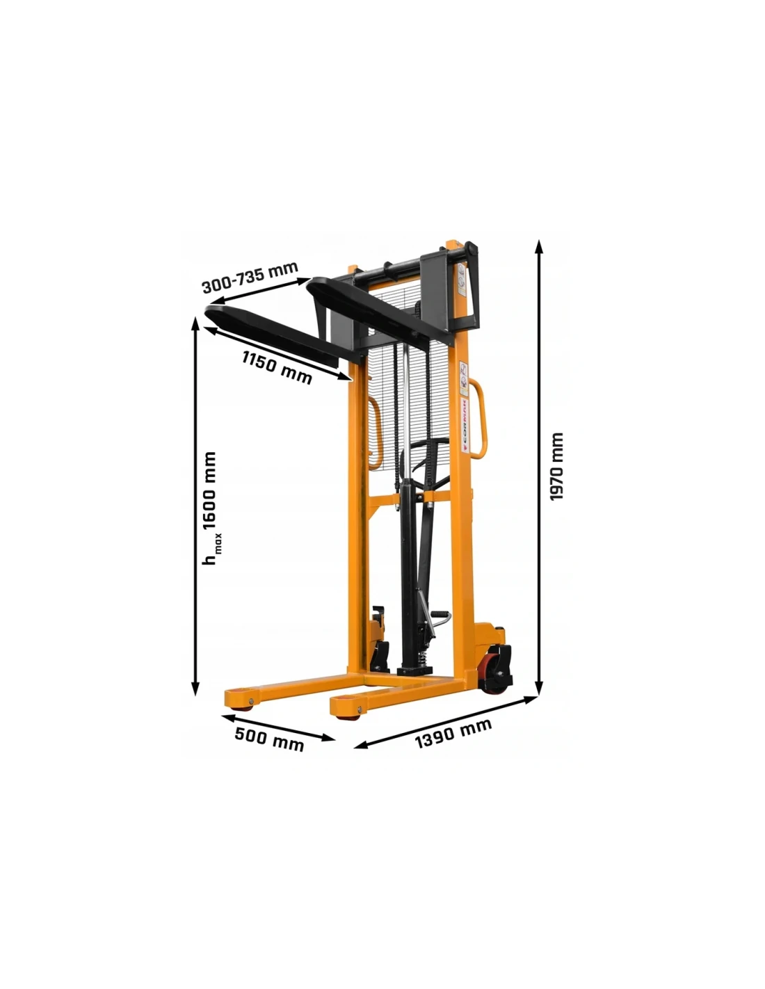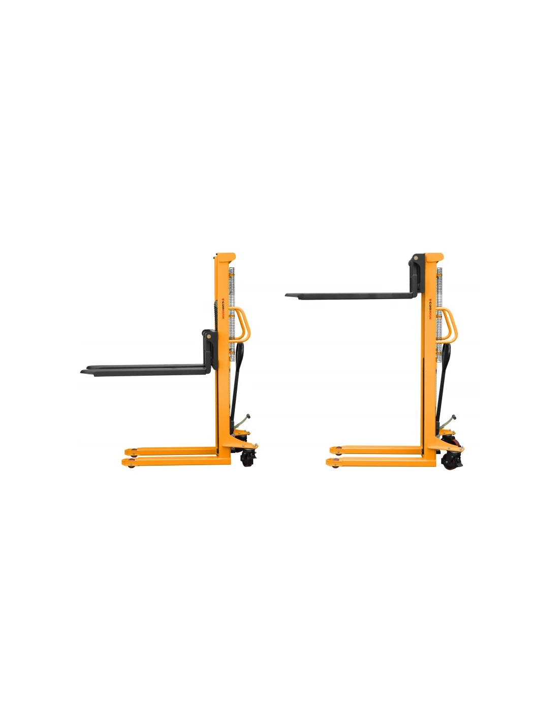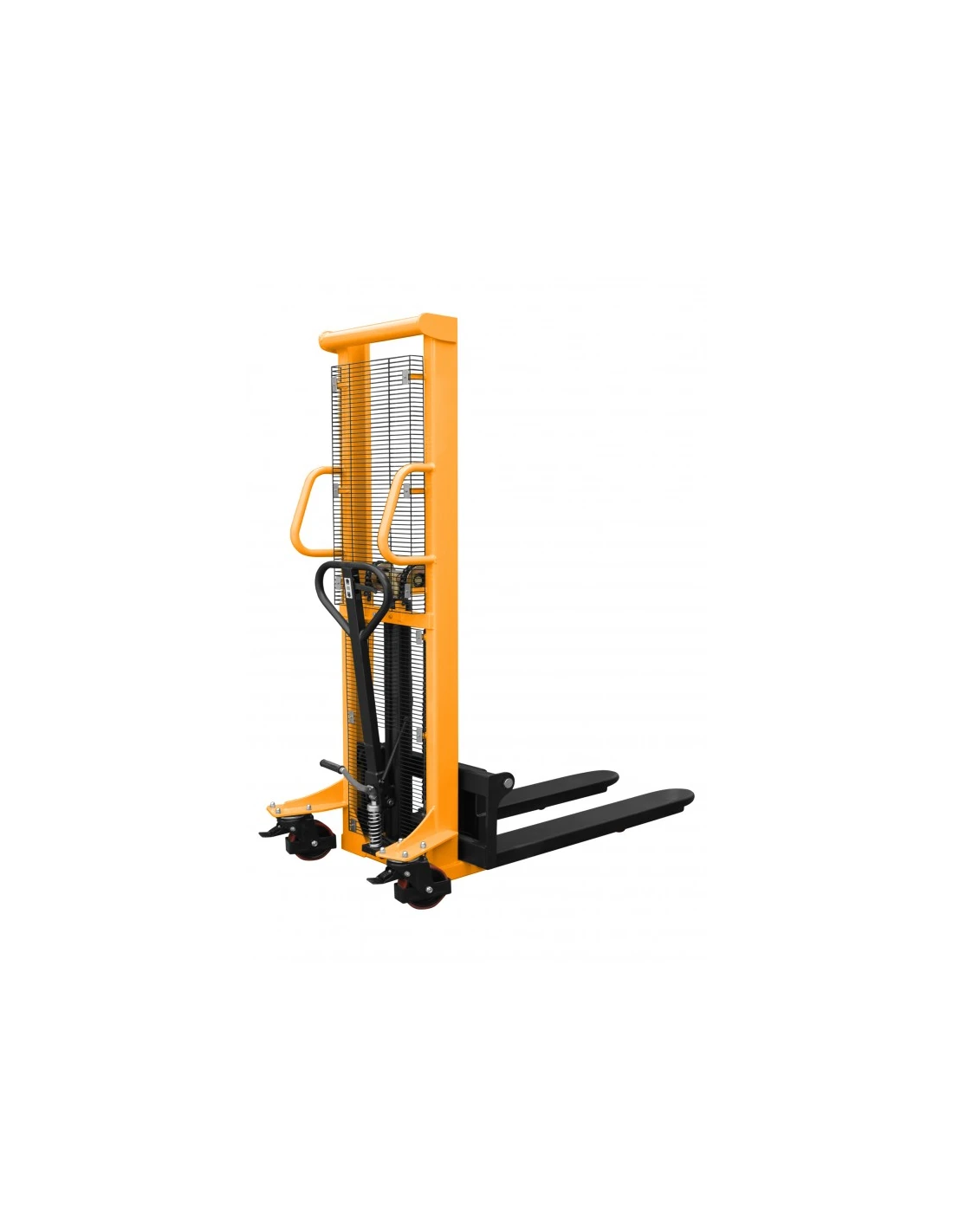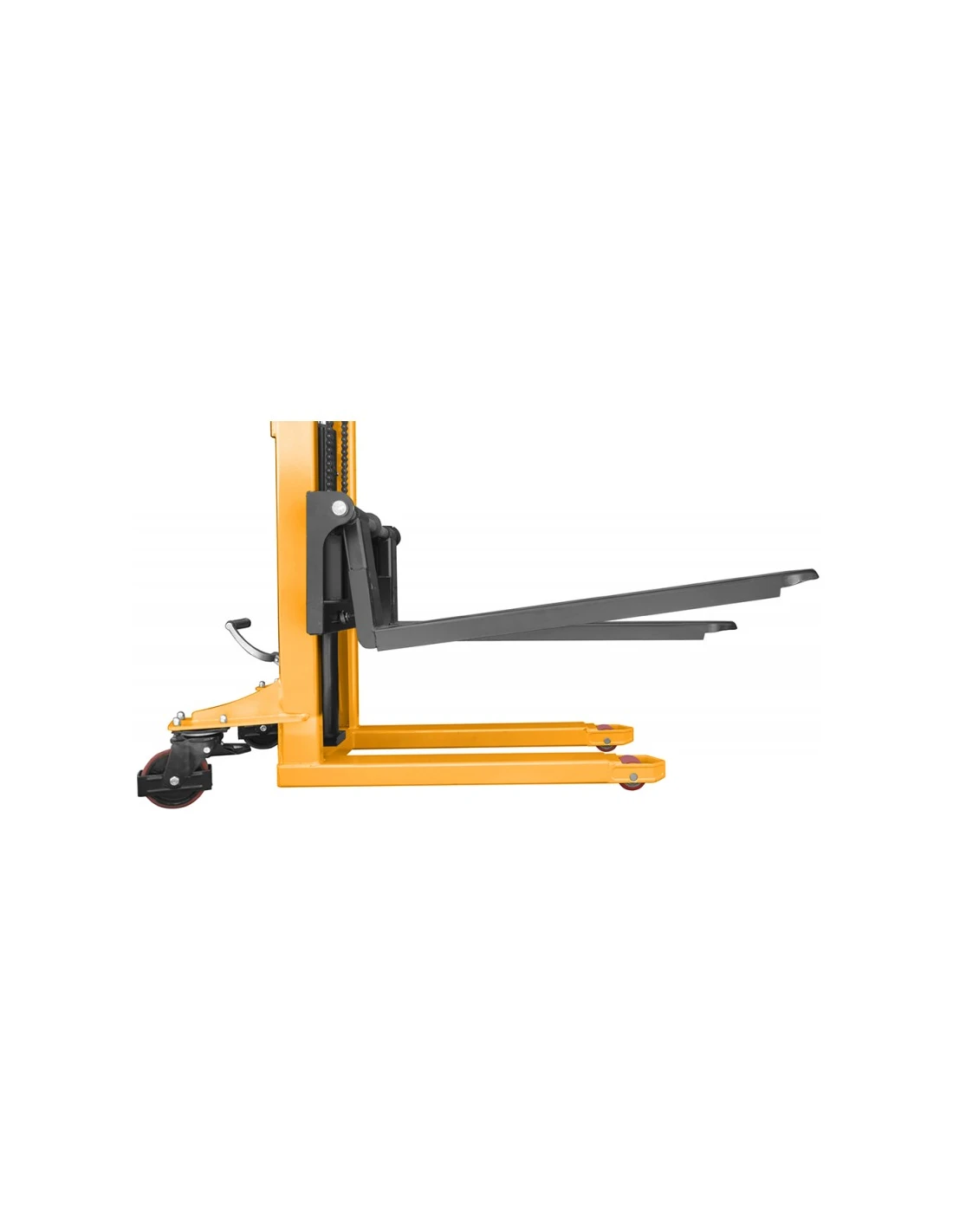 Konstrukce paletového vozíku WRHS1516 je mimořádně pevná a robustní. Je navržena tak, aby poskytovala dlouhodobou službu, a zaručuje spolehlivost a odolnost v náročných pracovních podmínkách. Polyuretanová kola a kolečka jsou odolná proti poškození a jsou vhodná pro použití na nerovném povrchu, což zajišťuje plynulý pohyb a optimální ovládání.