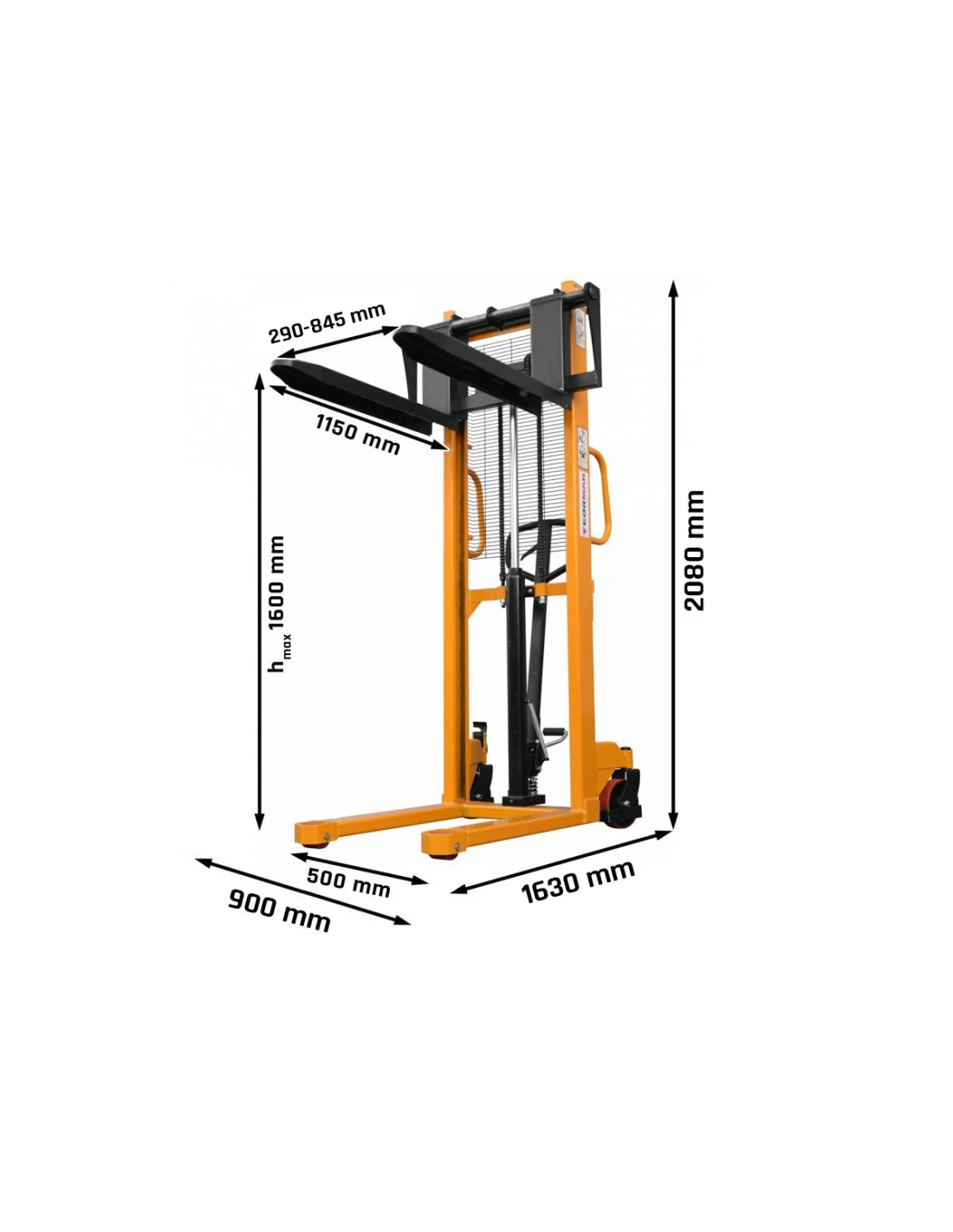 Ruční vozík s nosností 1000 kg a výškou zdvihu 1600 mm, vybavený polyuretanovými kolečky a nastavitelnou roztečí vidlic, je dokonalým nástrojem pro efektivní manipulaci s nákladem a jeho skladování. Díky polyuretanovým válcům zajišťuje stabilní, tichý a dlouhotrvající provoz, zatímco nastavitelná rozteč vidlic umožňuje přenášet nestandardní břemena různých velikostí. Stožárový vozík WRHS1016 je ideální pro použití ve skladech, obchodech a při nakládání a vykládání palet v dodávkových vozech, kde zajišťuje efektivní manipulaci a přesun různého zboží.