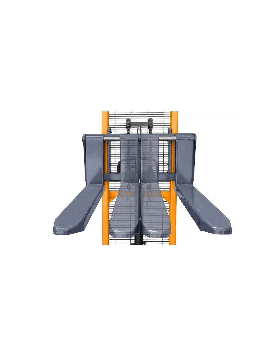 Nastavitelná rozteč vidlic (290-845 mm) je další vlastností, která tento vysokozdvižný vozík odlišuje od ostatních. Umožňuje mu převážet nestandardní náklady různých rozměrů, což zvyšuje jeho flexibilitu a všestrannost. Ať už je tvar nebo velikost nákladu jakákoli, stožárový vozík je schopen jej zvednout a efektivně přemístit.