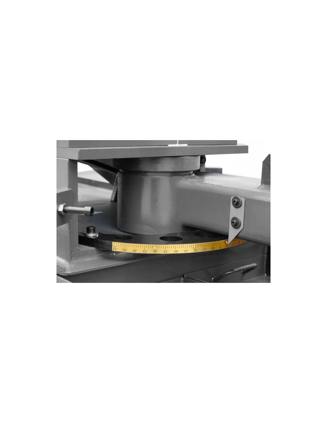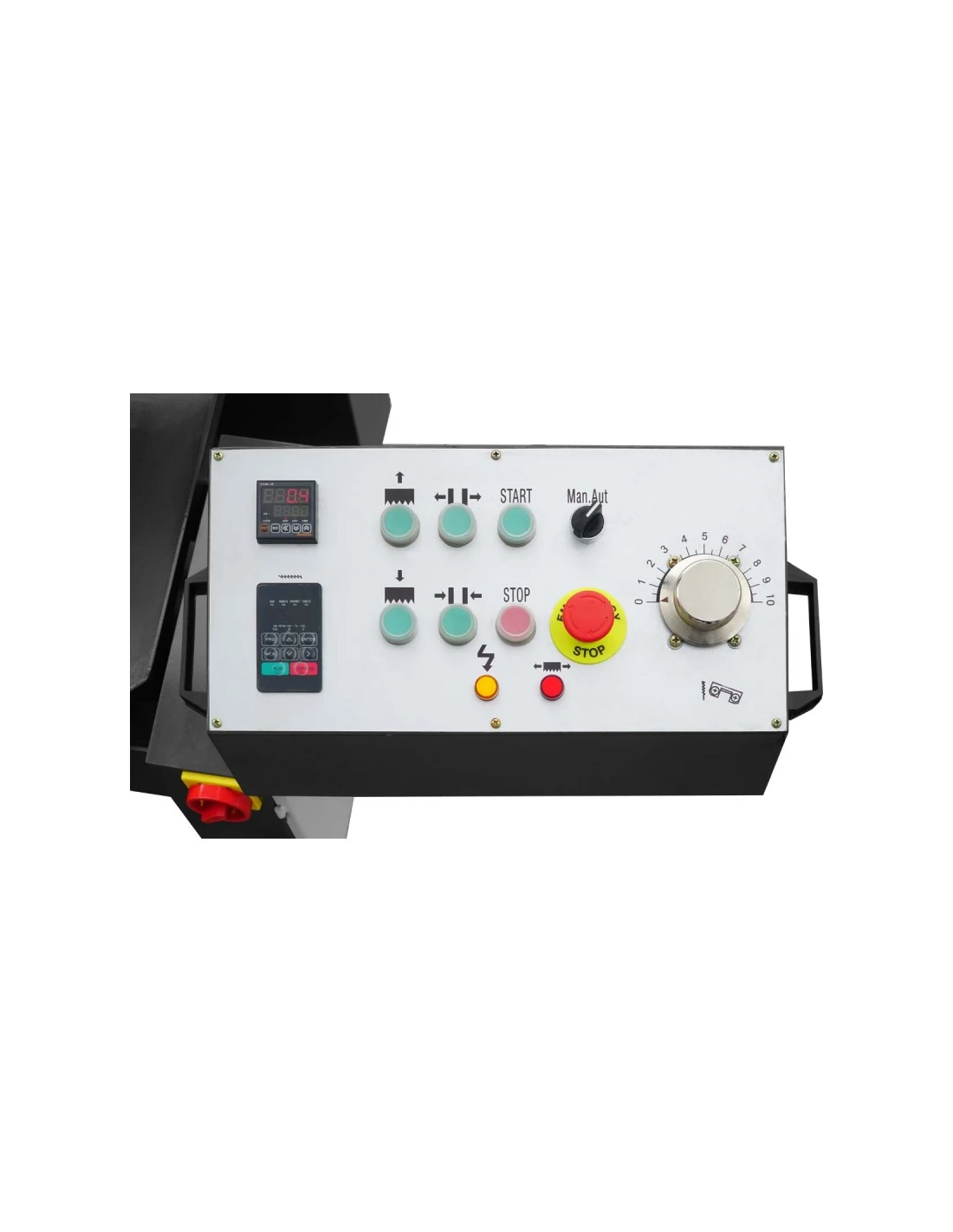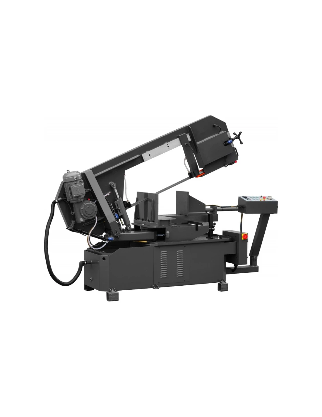U poloautomatických řezacích strojů probíhá po zapnutí spínače automaticky celý řezací cyklus, tj. upevnění řezaného materiálu v hydraulickém svěráku, spuštění pohybu řezacího pásu, spuštění řezacího ramene (nastavitelná rychlost), zastavení stroje po provedení řezu, zvednutí ramene nahoru (nastavitelná výška zvednutí ramene) a vypnutí hydraulického svěráku. Řezné rameno, vyrobené z homogenního litinového odlitku, spolu s řezným pásem o šířce 34 mm použitým v této řezačce umožňuje plnohodnotné řezání profilů i plných materiálů.