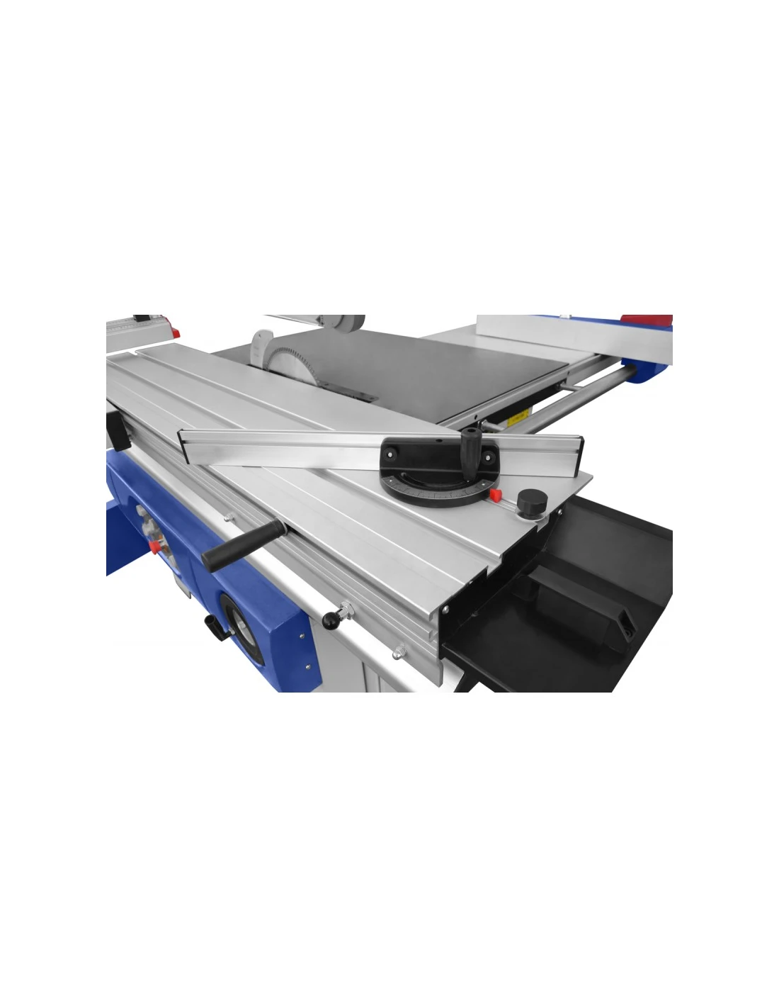 - Teleskopický podélný doraz se dvěma dorazovými klapkami pro zajištění přesných řezů.