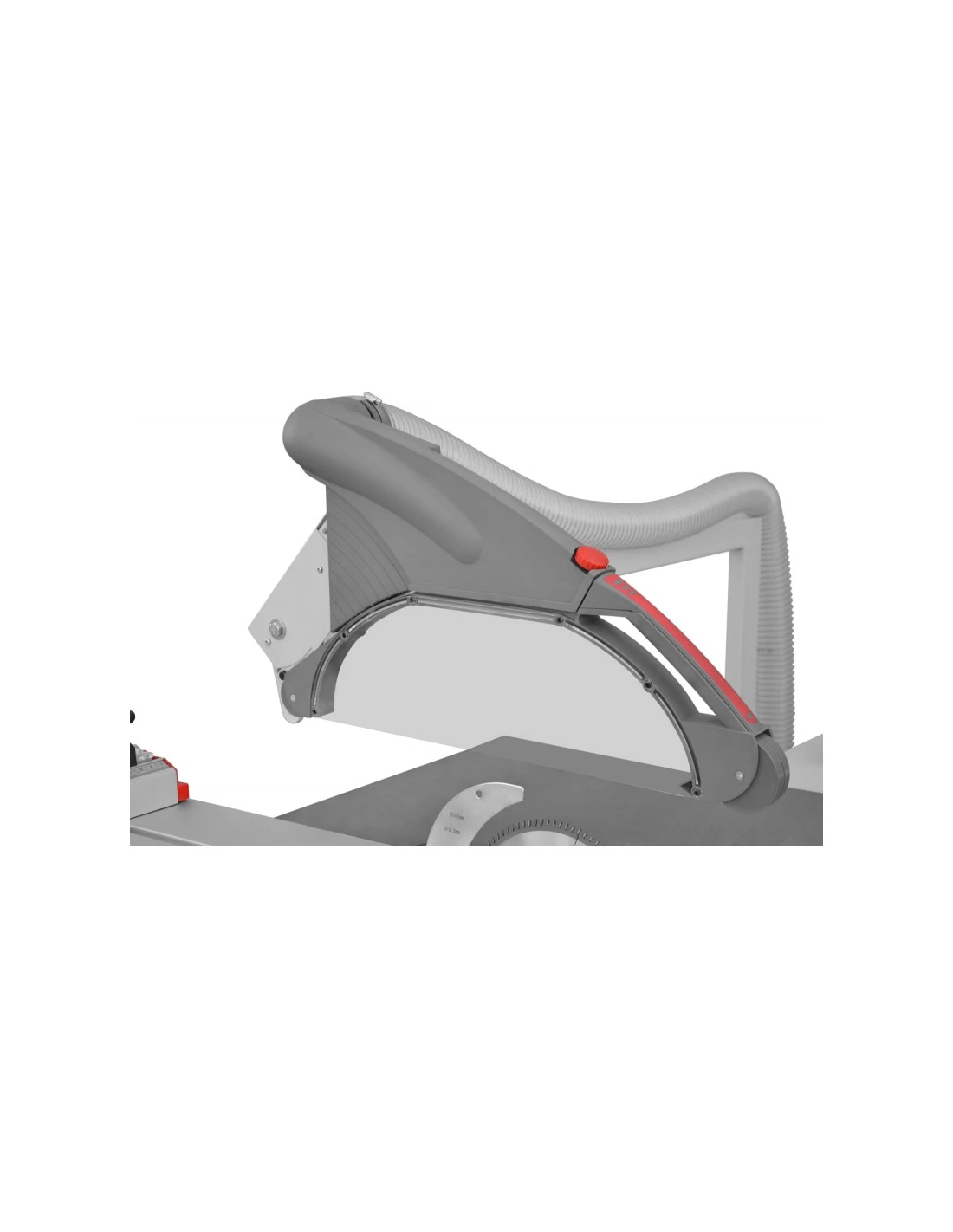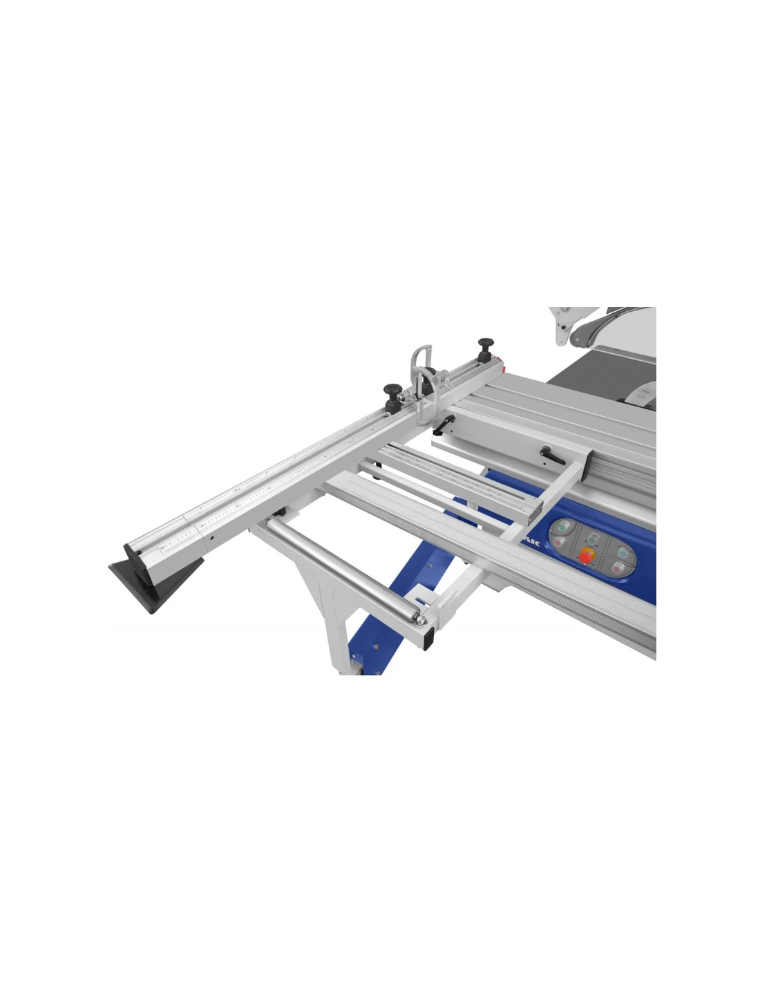 - Teleskopický podélný doraz se dvěma dorazovými klapkami, zaručující přesné řezy.