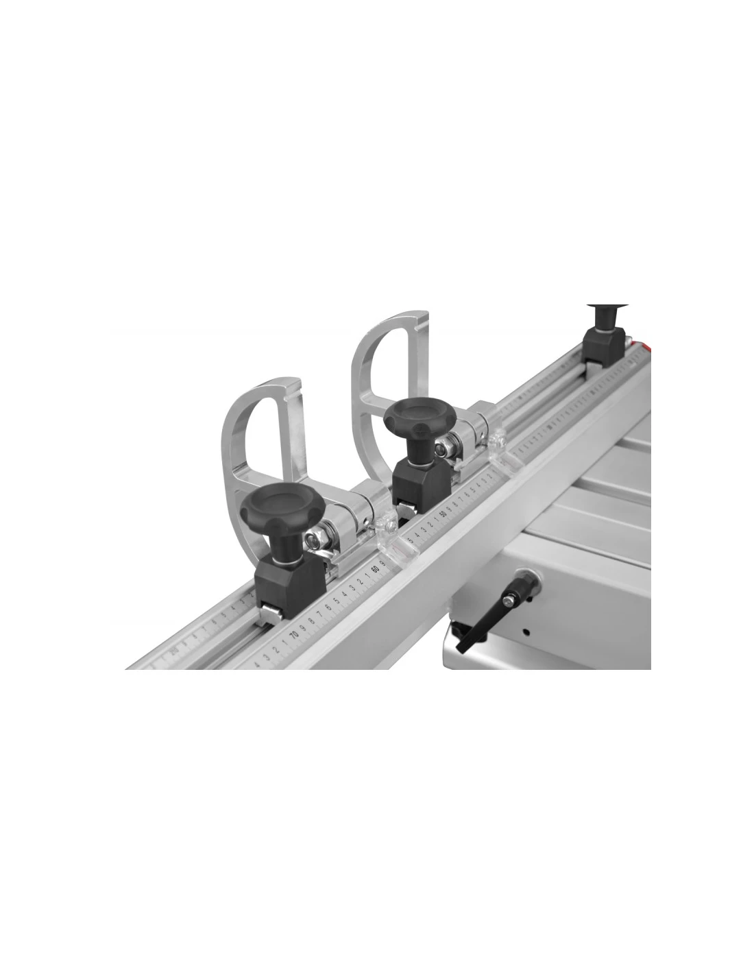 - Teleskopický výložník s pravítkem o délce 1600 mm a 2 nárazníky, který umožňuje přesné a stabilní vedení obrobku