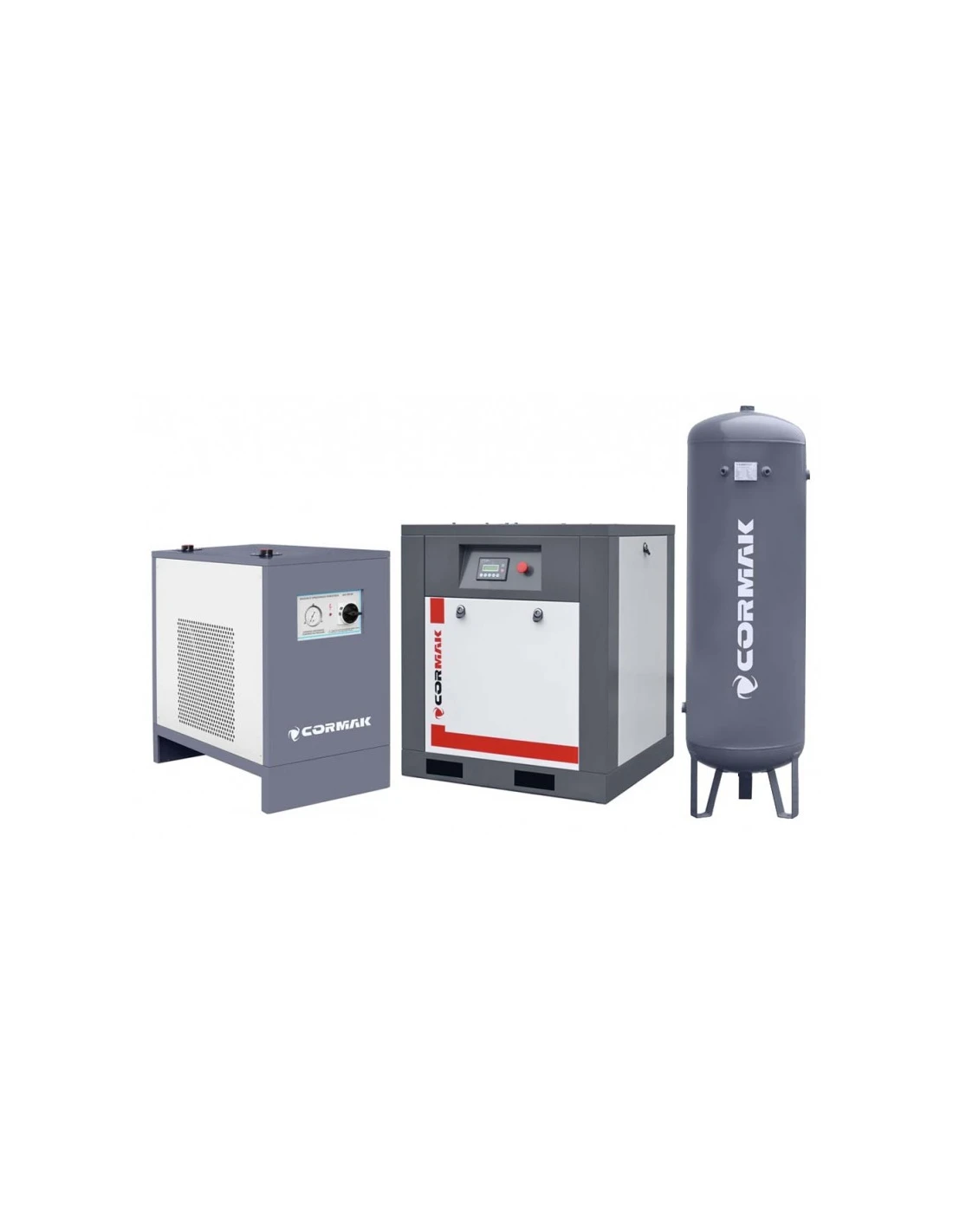 Sada obsahuje šroubový kompresor THEOR 10 polské značky CORMAK, vertikální tlakovou láhev o objemu 500 l a sušičku IZBERG N10S Šroubový kompresor CORMAK polské značky THEOR představuje nejmodernější pneumatické řešení v kombinaci s použitím vysoce kvalitních materiálů a komponent. Nízké provozní náklady, snadná obsluha, ergonomická a robustní konstrukce a vysoký výkon stroje jsou zárukou efektivního a bezproblémového provozu.