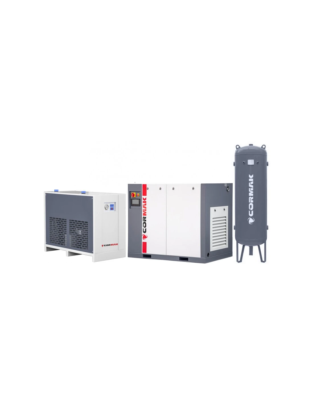 Sada obsahuje THEOR 75 INVERTERšroubový kompresor vybavený měničem polské značky CORMAK, vertikální láhev na stlačený vzduch o objemu 500 l a sušičku IZBERG N75S Šroubový kompresor polské značky CORMAK řady THEOR představuje nejmodernější pneumatické řešení v kombinaci s použitím vysoce kvalitních materiálů a komponent. Nízké provozní náklady, snadná obsluha, ergonomická a robustní konstrukce a vysoký výkon stroje jsou zárukou efektivního a bezproblémového provozu.