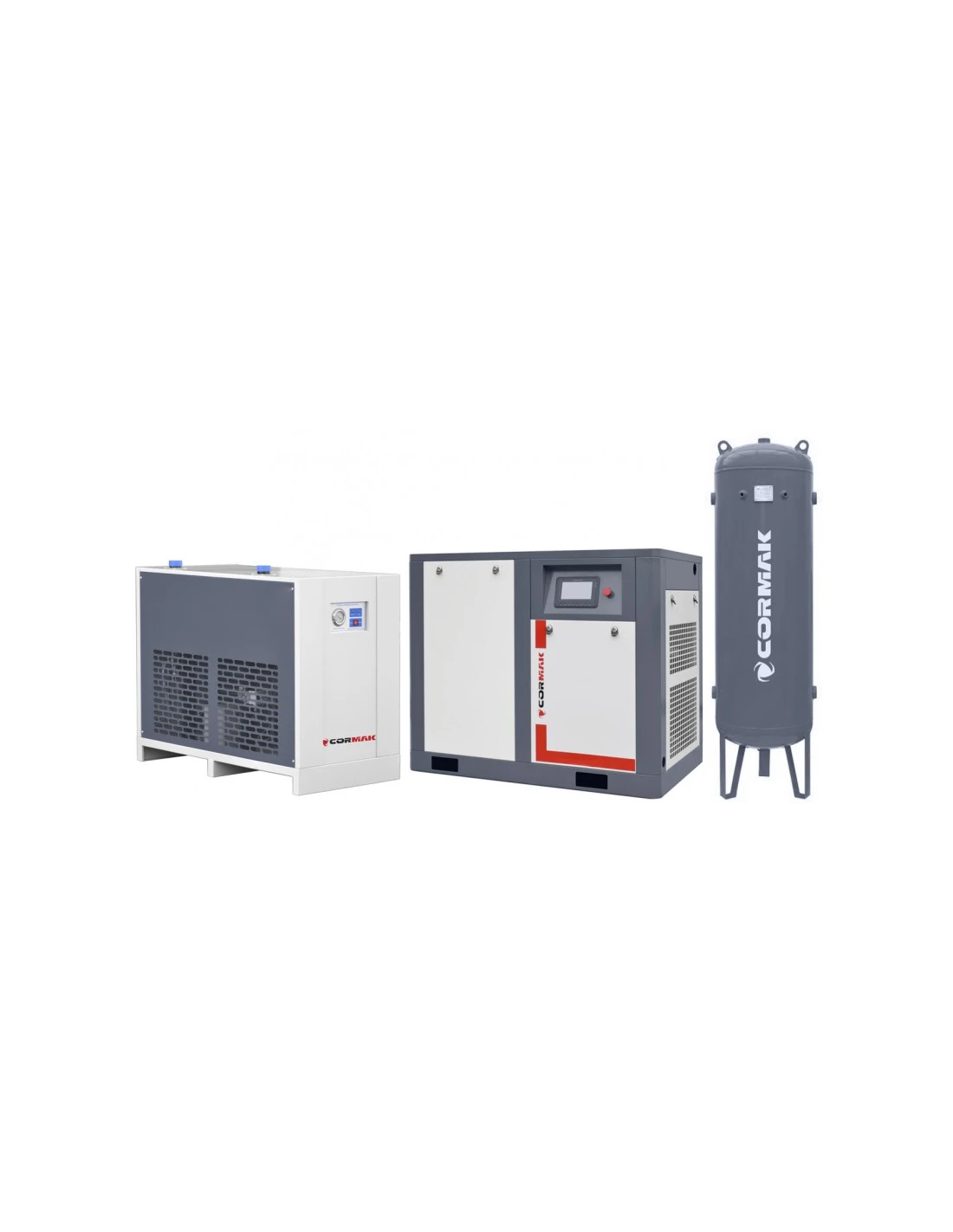 Sada obsahuje THEOR 50 INVERTERšroubový kompresor vybavený měničem polské značky CORMAK, vertikální láhev na stlačený vzduch o objemu 500 l a sušičku IZBERG N75S Šroubový kompresor polské značky CORMAK řady THEOR představuje nejmodernější pneumatické řešení v kombinaci s použitím vysoce kvalitních materiálů a komponent. Nízké provozní náklady, snadná obsluha, ergonomická a robustní konstrukce a vysoký výkon stroje jsou zárukou efektivního a bezproblémového provozu.