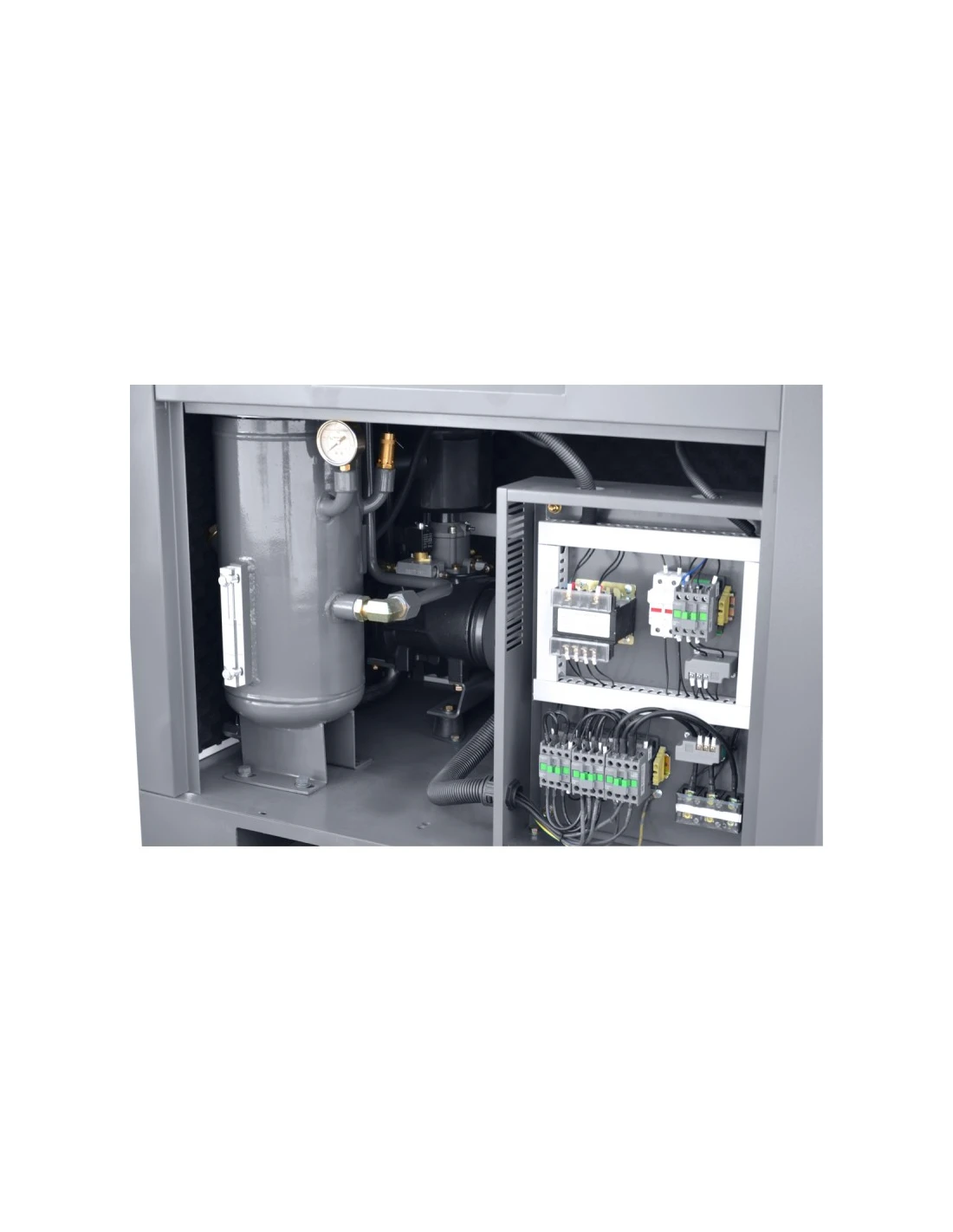 - nízkou hlučnost rotačního šroubového kompresoru díky speciálně navržené zvukově izolované skříni (odhlučňovací panely)