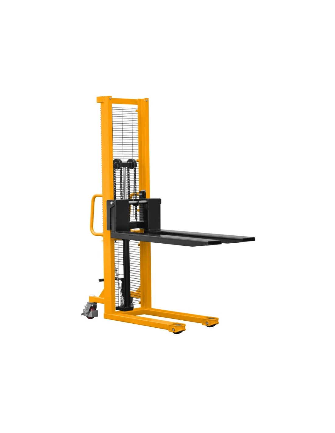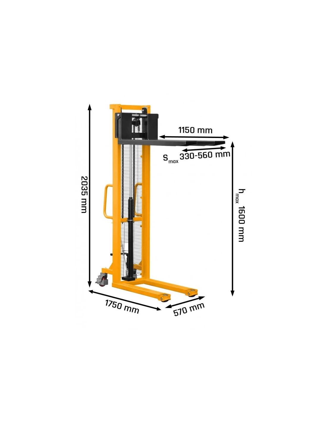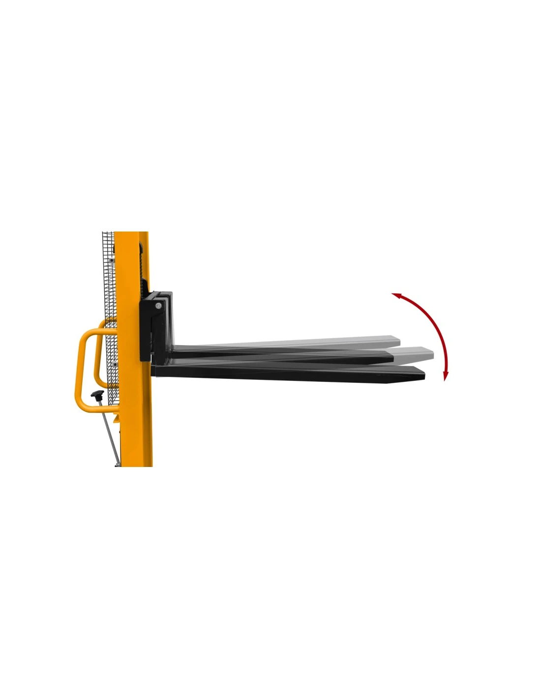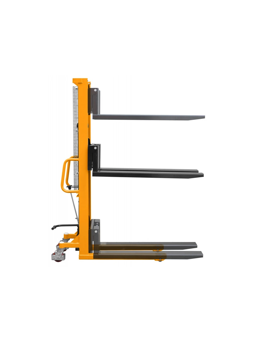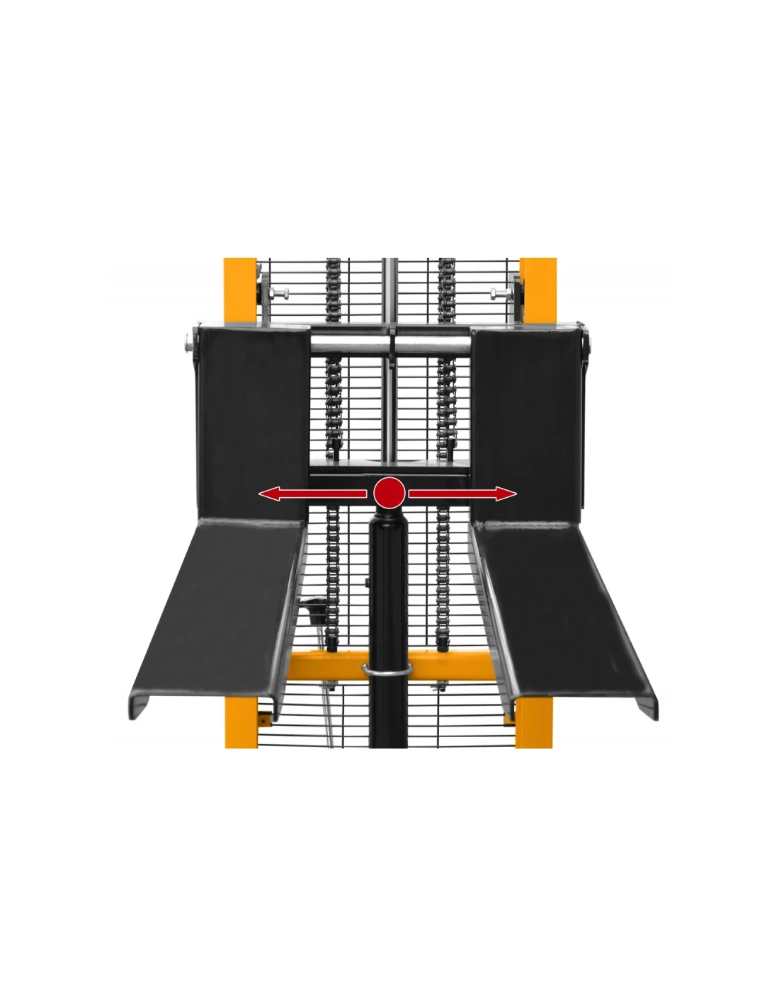 Model nabízí nastavitelnou šířku vidlic v rozmezí 330-540 mm, díky čemuž pojme různé typy břemen. Zesílené nožní čerpadlo zajišťuje efektivní a účinné zvedání, zatímco snadno použitelný mechanismus spouštění vidlic vám dává plnou kontrolu nad tímto procesem.