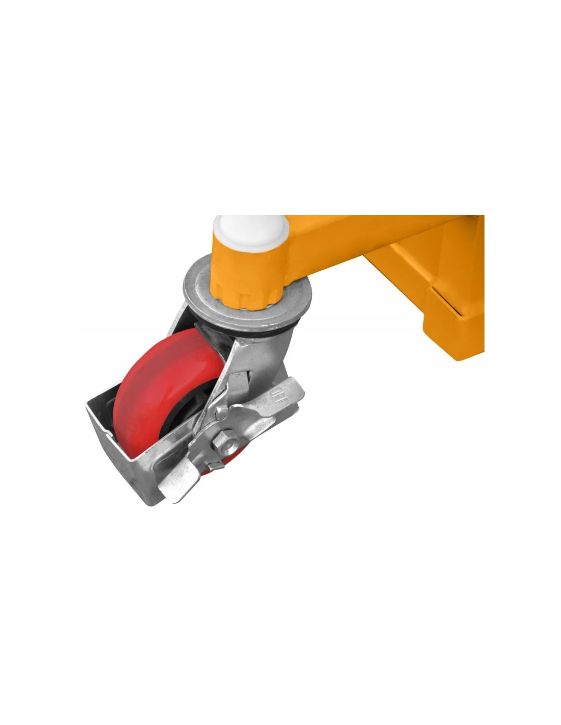 Za zmínku stojí, že stožárový zvedák má na obou kolech parkovací nožní brzdu, která zajišťuje bezpečné zastavení jednotky během provozu. Tento důležitý bezpečnostní prvek chrání obsluhu i životní prostředí.