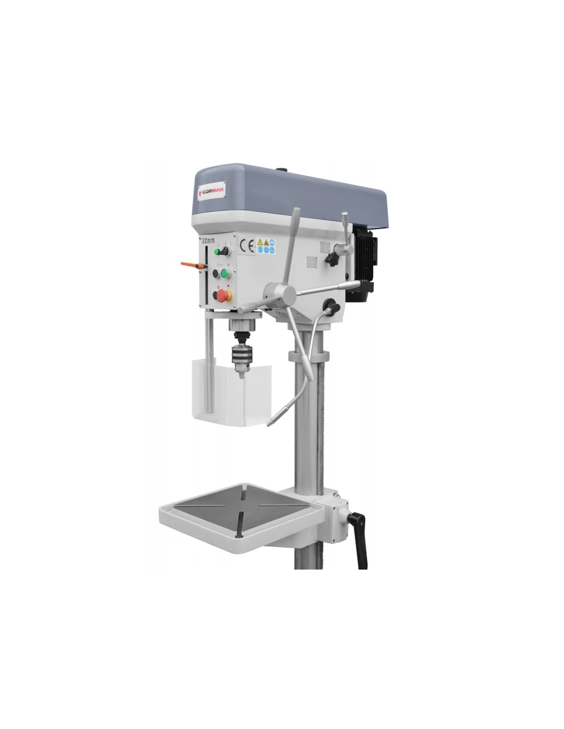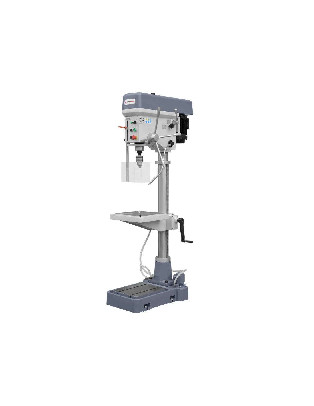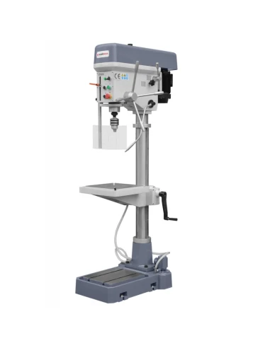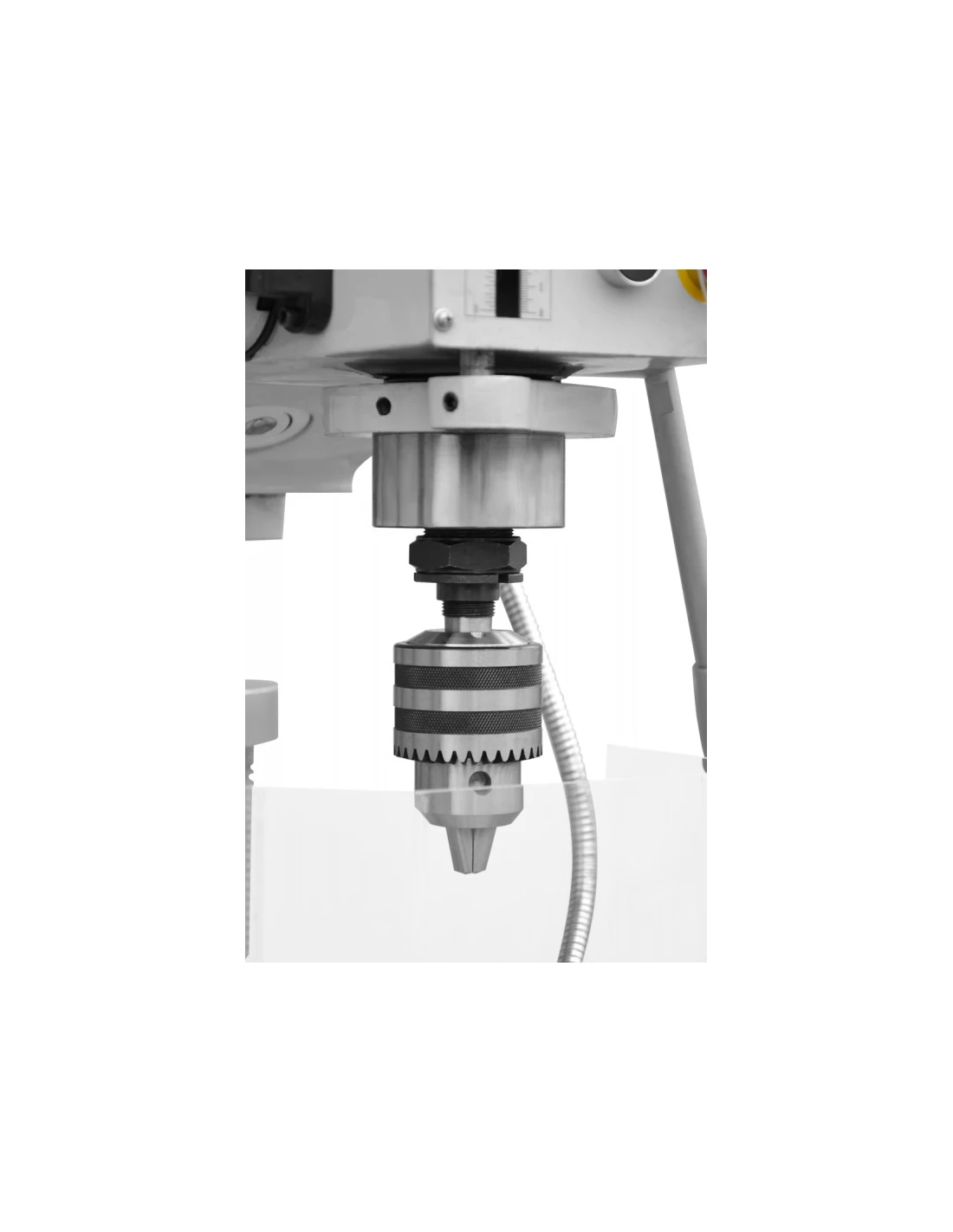 Silná a účinná tyčová vrtačka pro průmyslové aplikace s výškou 190 cm. Vrtačka je vybavena výkonným chladicím systémem s kovovým vývodem. Stroj je vybaven funkcí automatického zpětného chodu při závitování. Je vybavena 8 RYCHLOSTMI s rozsahem otáček: 140, 250, 380, 500, 580, 850, 1250, 1960 ot/min. Dva pracovní stoly poskytují množství možností obrábění. Indukční motor nejnovější generace spolu s vhodně navrženým řemenovým převodem zajišťuje vysoký výkon a výkonnost vrtačky.