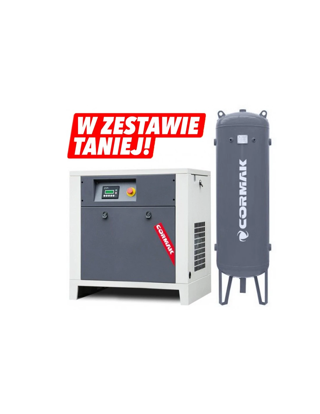 Sada obsahuje šroubový kompresor LUFT 700, vertikální láhev na stlačený vzduch o objemu 300 l s příslušenstvím. Šroubový kompresor řady LUFT polské značky CORMAK představuje nejmodernější řešení používané v pneumatice v kombinaci s použitím vysoce kvalitních materiálů a komponentů. Nízké provozní náklady, snadná obsluha, ergonomická a robustní konstrukce a vysoká účinnost zařízení jsou zárukou efektivní a bezproblémové práce.