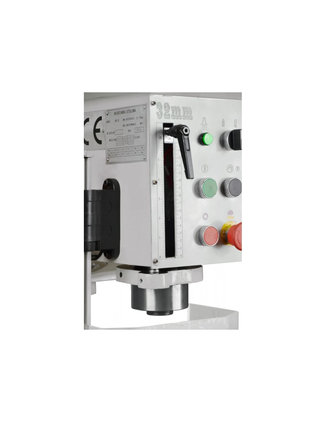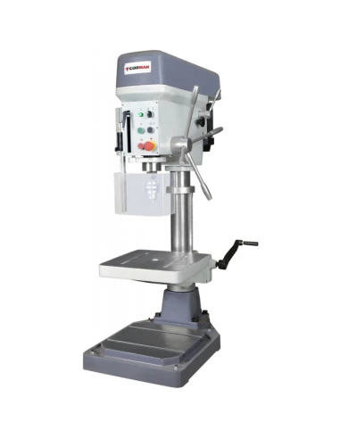 Stolní vrtačka CORMAK WS32 je robustní nástroj s vysokou tuhostí vřetena. Je vybavena automatickým zapínáním levých otáček, velkým zdvihem vřetena a přehledným ovládacím panelem. Je vyrobena z nejkvalitnějších zkušených odlitků, nabízí výkonný motor a certifikaci CE. Maximální průměr vrtání do oceli je 32 mm a maximální průměr závitů je M24. Je vybavena držákem vřetena MK3, který zajišťuje stabilitu a snadnou výměnu nástrojů. Ideální pro profesionální i hobby použití.